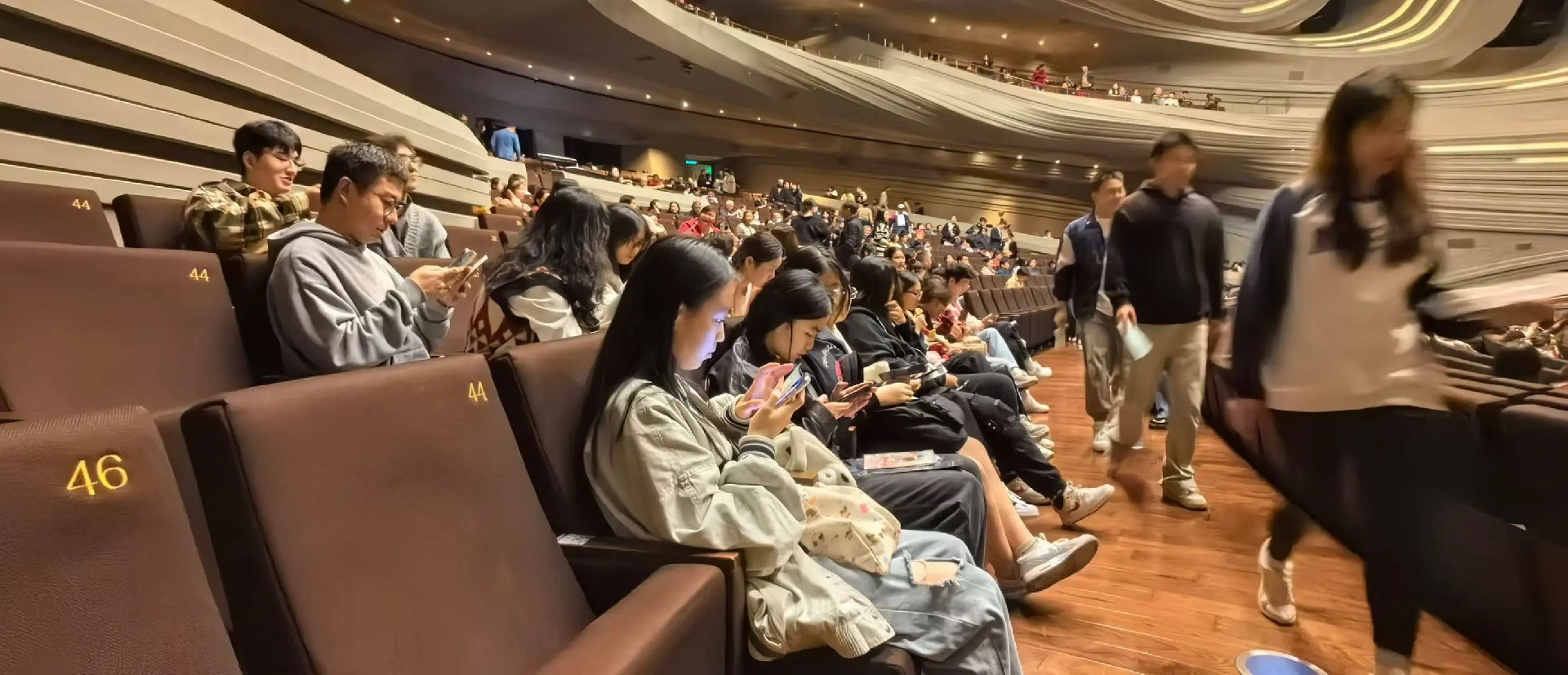 表演生在剧场观摩学习时的抓拍